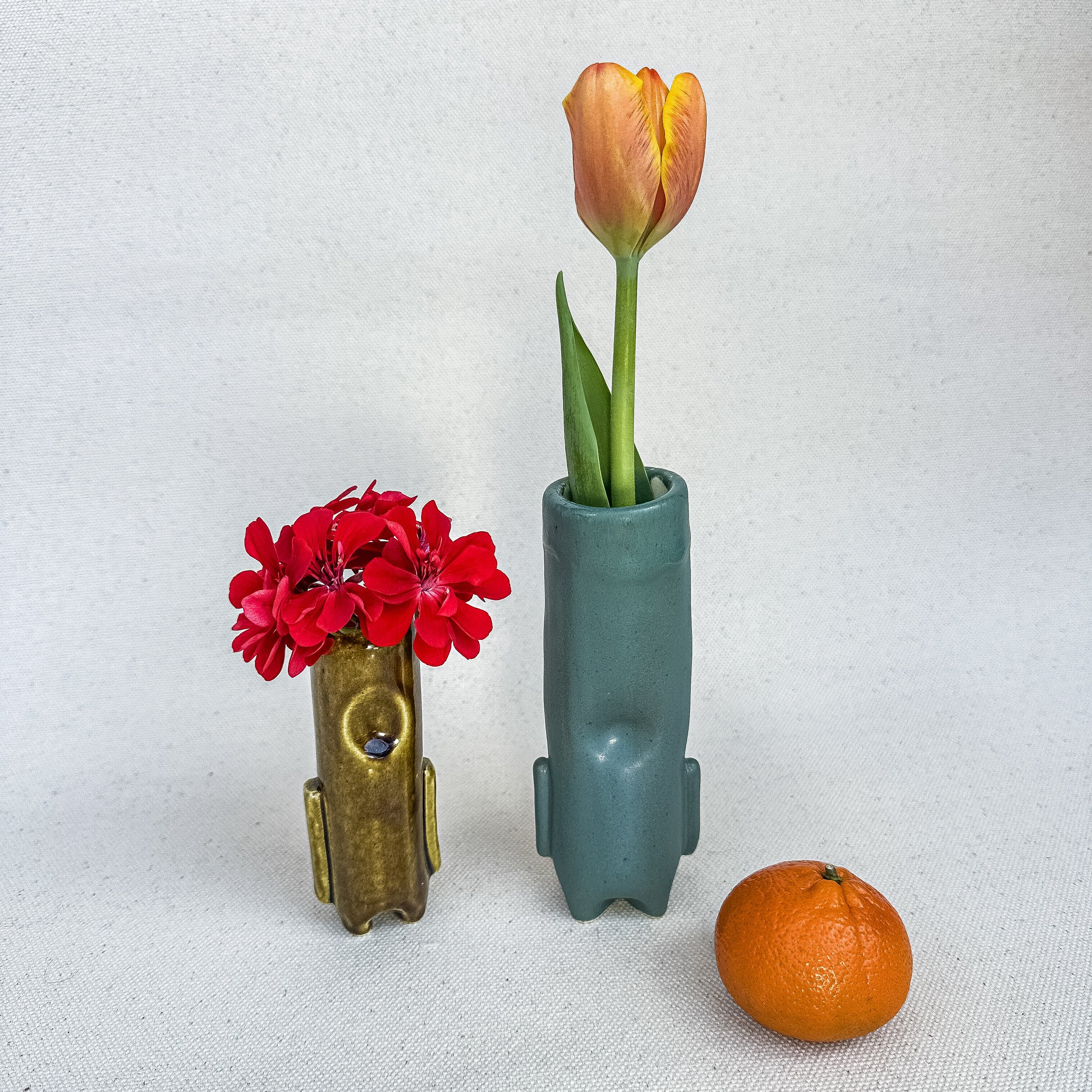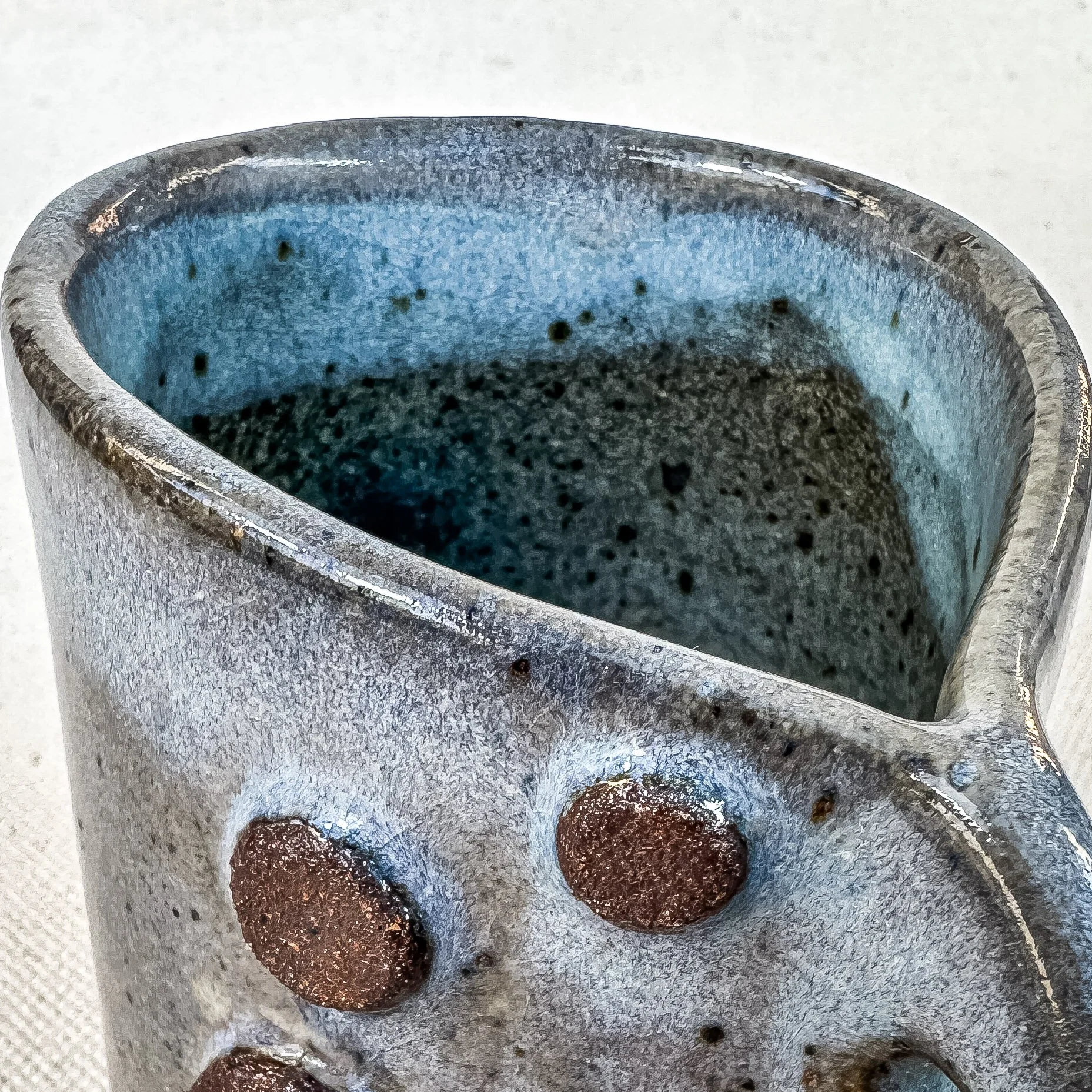 Everything you see here is made by hand, one at a time, by me, without the use of molds, templates, or stencils. Every piece is truly one-of-a-kind, each with its own character. Minor “imperfections” in glaze and shape are part of the beauty. This natural variation is a feature, not a bug.